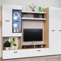 Гостиная Нэнси NEW Вариант №4 ЛДСП (Белый глянец/Сонома)
