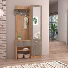 Прихожая Иннэс-3 Универсальная (ЛДСП дуб крафт золотой/камень темный)